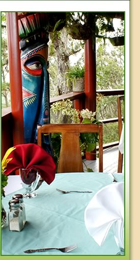 The lodge, owned by Belizean Carlos Popper, consists of 19 cabanas of varied size, each opening onto screened verandas with wonderful views, and a hammock. All cabanas are well screened, and mosquito netting is provided over the beds, although we didn't find it necessary to use it. The attractive, sparkling clean rooms have hardwood floors, and the locally crafted furnishings are basic, but adequate. Our showers were not necessarily hot, but warm enough to be comfortable. The treetops are alive with bird activity, and bird watchers will enjoy adding species unique to this habitat, such as the Acorn Woodpecker, to their sightings list. You'll also see some of the regulars; orioles, oropendolas, and kites. Guests will likely encounter wildlife in the forest, as well. As we walked to our cabana after dinner, we saw two gray foxes cavorting in the glow of a lamppost along the path, leaping high in the air to catch bugs that swooped through the light.