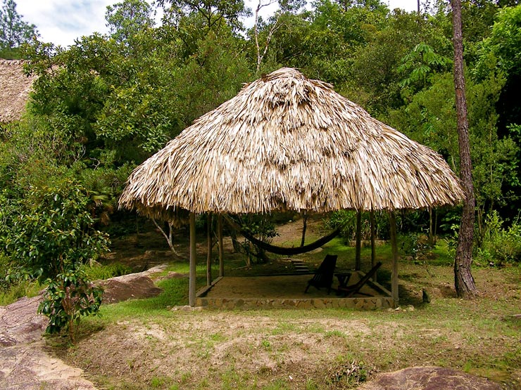 Palapa overlooking the river with two shaded hammocks